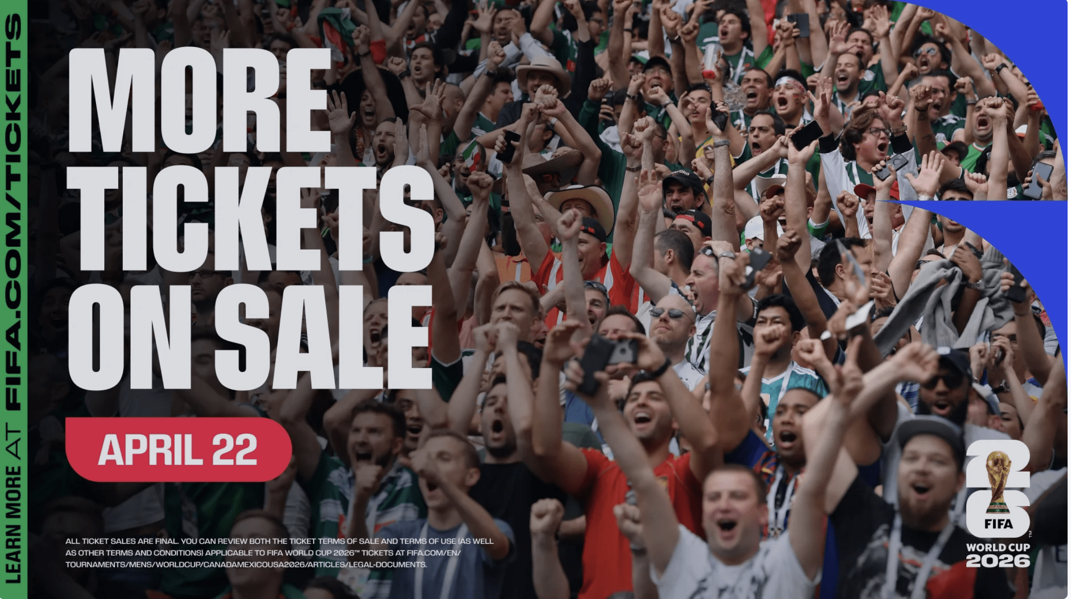 To coincide with the 50-day countdown to the FIFA World Cup 2026™, new ticket inventory will be made available to the general public via FIFA.com/tickets from 11:00 ET/17:00 CET on Wednesday, 22 April, with tickets for all 104 matches set to go on sale.